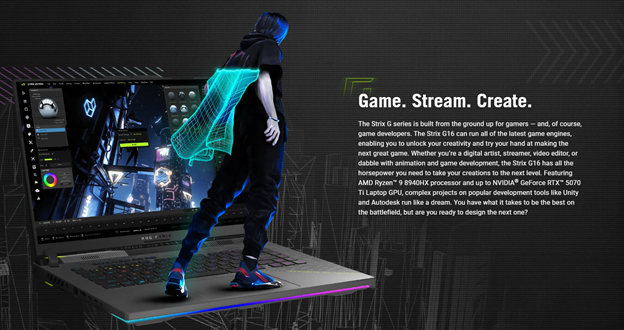 Putting a 16-core CPU in a laptop requires serious thermal management. The Strix G16 utilizes ROG Intelligent Cooling, which includes: